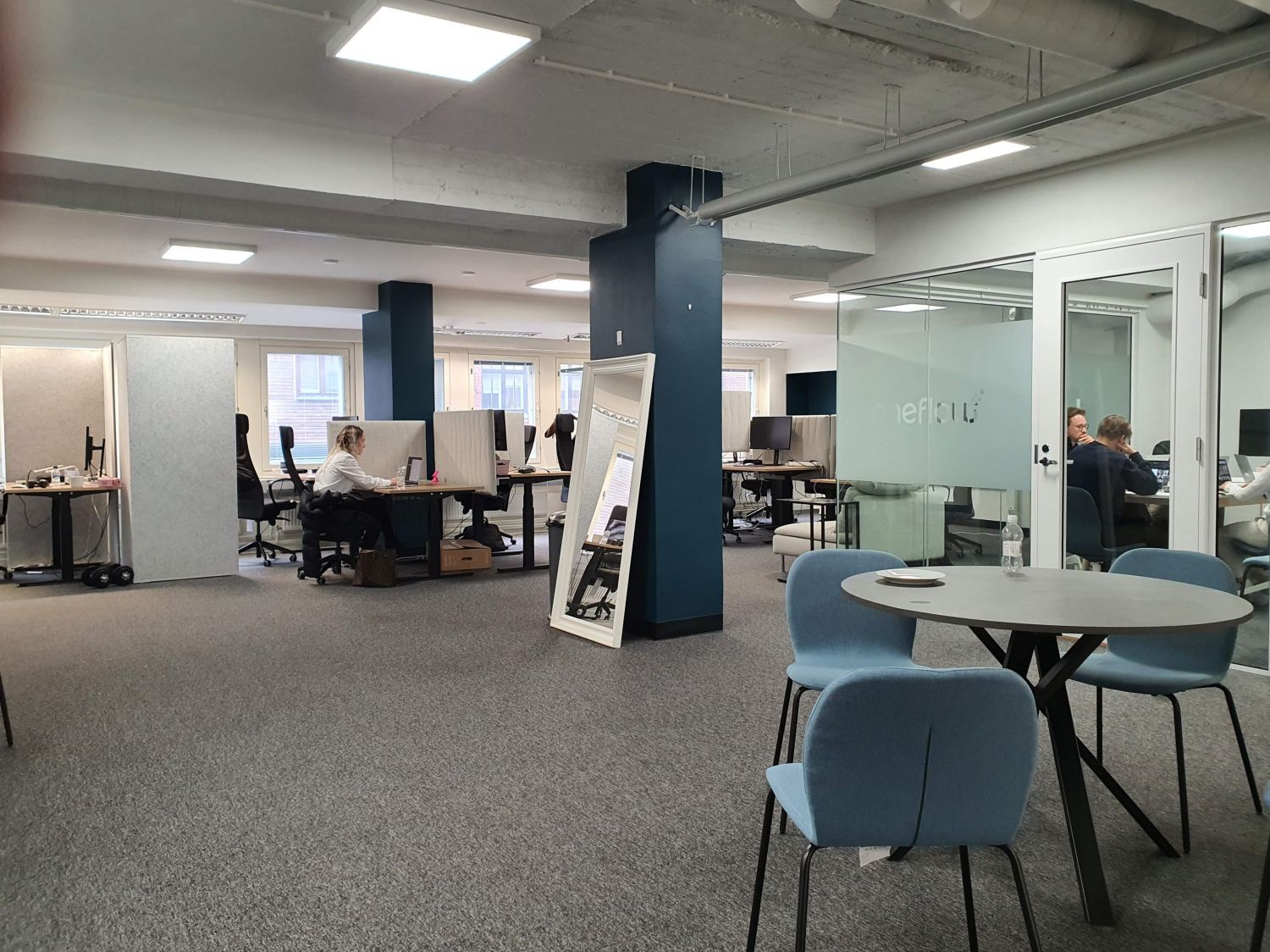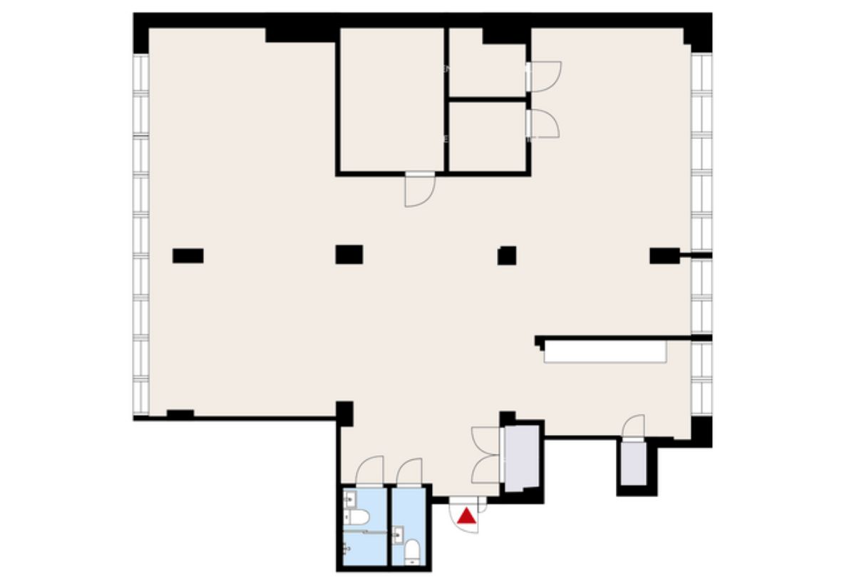 Tämä avara ja valoisa tila on pääosin avonaista, mutta siitä löytyy myös neuvottelutila, kaksi pientä suljettavaa työhuonetta, taukokeittiö, pari WC-tilaa ja erillinen suihkutila.