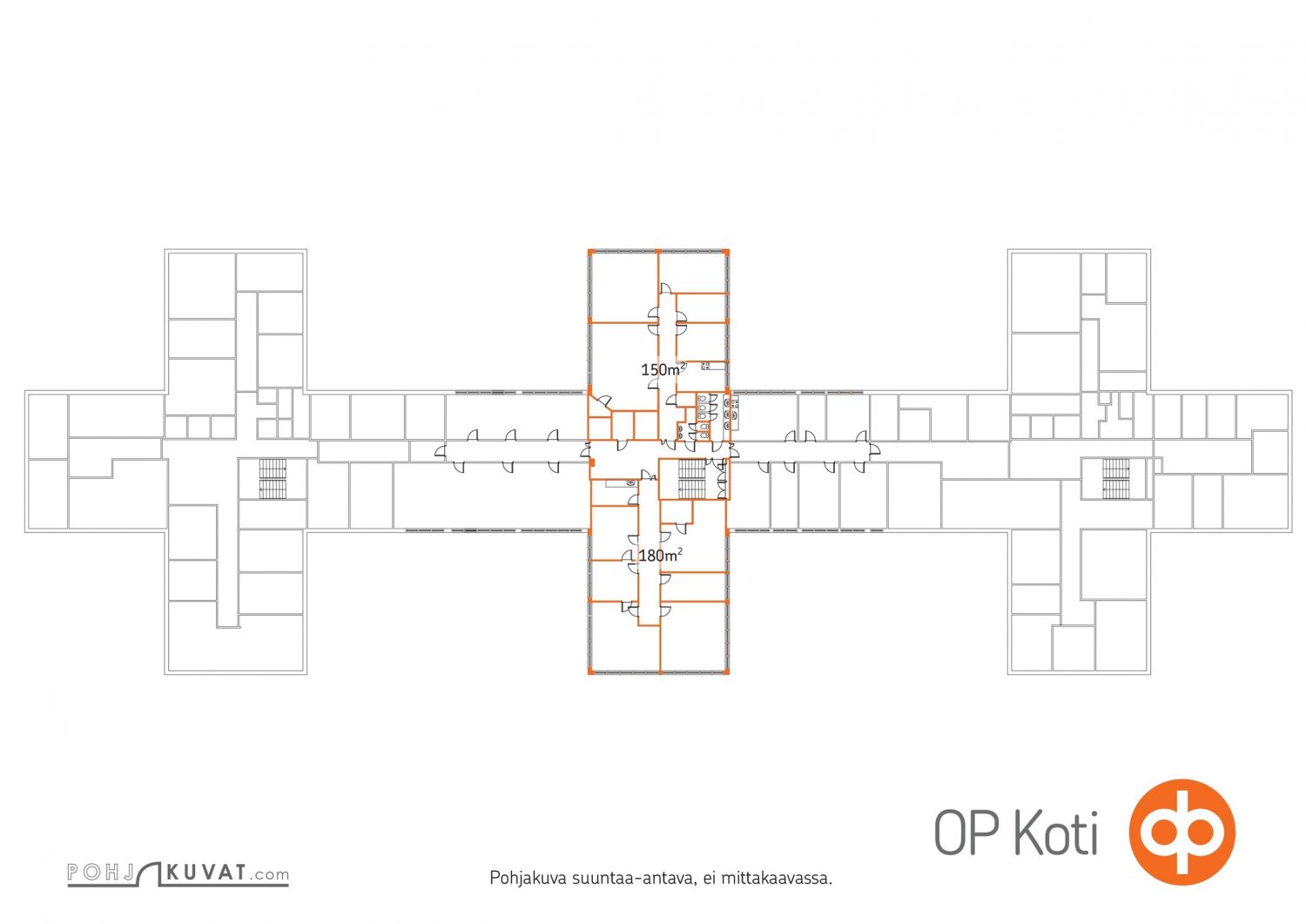 Tiloja on vuokrattu kahdessa osassa n.150 m² ja n.180 m². Pinta-alatietoja ei ole tarkastusmitattu.