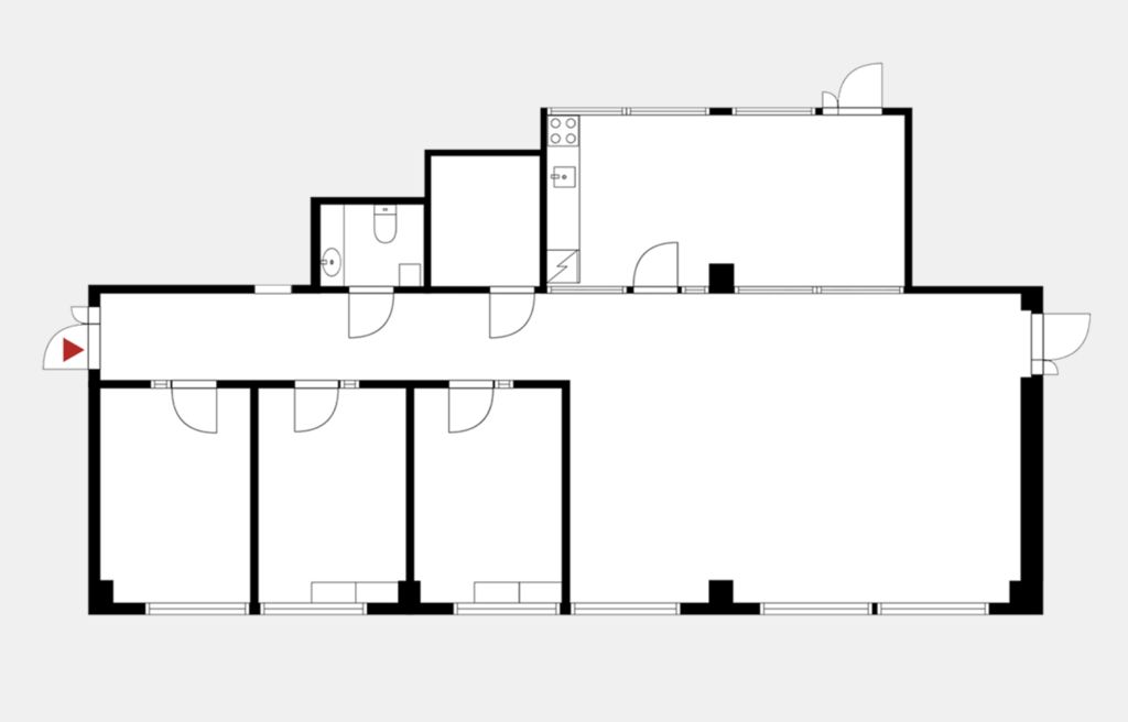 Tämä 150,5 m² toimistotila sijaitsee B-talon 2. kerroksessa. Tilassa on avotilaa, huoneita, oma keittiö ja wc:t.