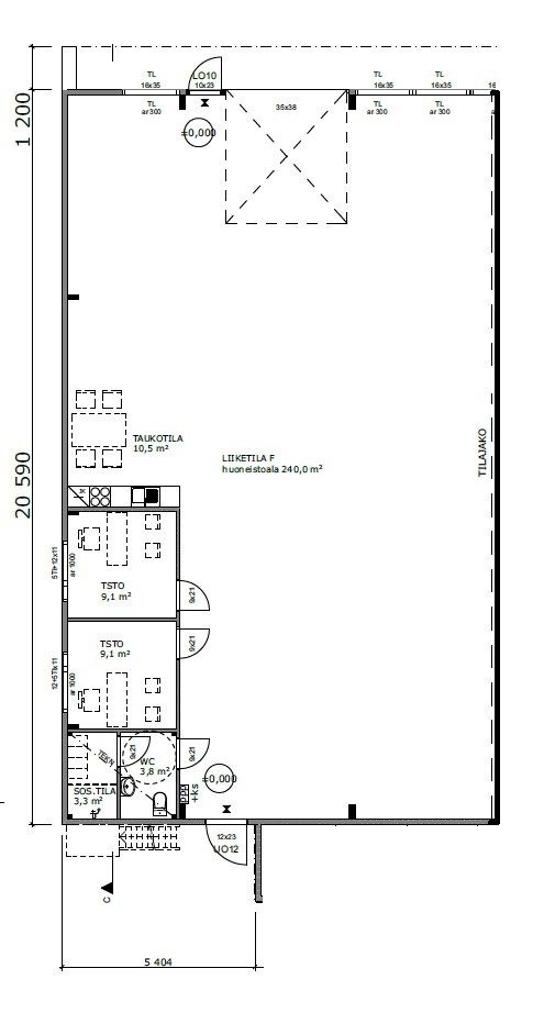 Tilaa on 240 m2 ja koostuu pääosin nosto-ovellisesta hallitilasta, jossa lattiakaivo ja laattalattia. Hallissa näyttävästi ikkunapinta-alaa Kempeleentien puolelle. Tiloissa kaksi erillistä toimistoa, kahvio-/taukotila sekä wc- ja sosiaalitilat. Kulkemista helpottaa kaksi erillistä käyntiovea.