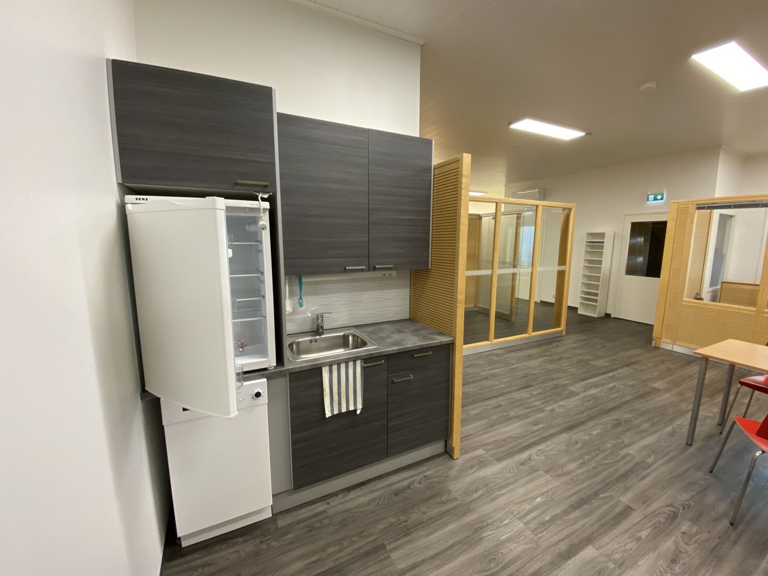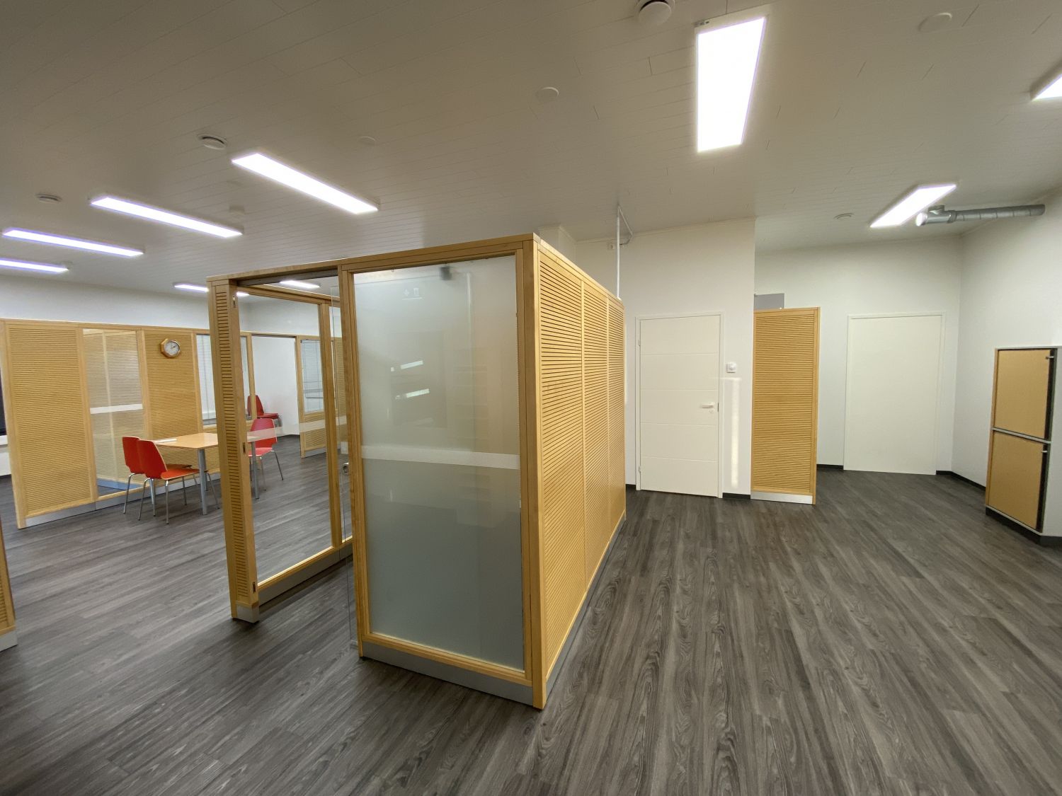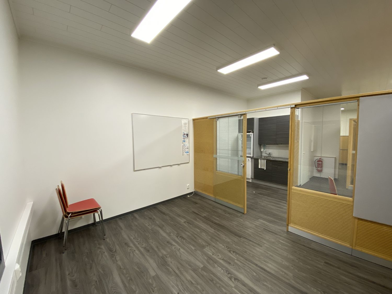 Koneellinen ilmanvaihto ja ilmalämpöpumppu. Kaksi wc:tä ja kaksi keittiötä. Tilan voi jakaa kahdeksi pienemmäksi tilaksi jos tekee pitkän sopimuksen. Neukkarina hiljainen huone. Nyt jaettu 9 työpisteeseen akustoivilla seinäkkeillä. Kevyet seinäkkeet helposti purettavissa tai muokattavissa teille sopivaksi.