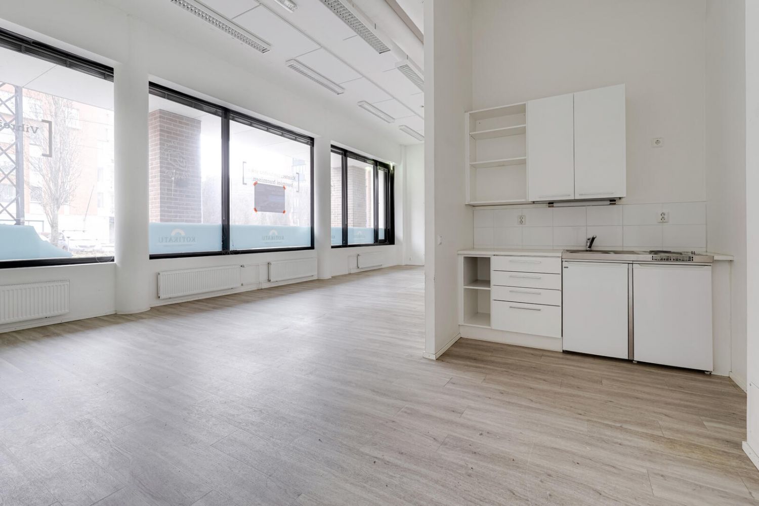 Avarassa yhdessä tasossa sijaitsevassa tilassa on suuret kadulle avautuvat ikkunat, jotka tuovat runsaasti luonnonvaloa ja näkyvyyttä. Tila on tällä hetkellä yhtenäinen kokonaisuus, mutta muuntuu helposti eri liiketoiminnan tarpeisiin. Varusteluun kuuluu keittiö, kodinhoitohuone ja kuraeteinen.