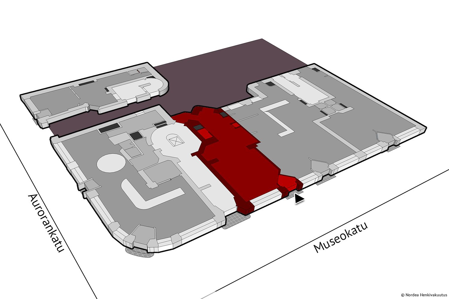 Saneeratussa arvokiinteistössä Museokadun ja Aurorankadun kulmassa vuokrattavissa pieni katutason toimitila. Tila sopii hyvin niin liiketilaksi kuin toimistoksikin. Kohde sijaitsee ydinkeskustan tuntumassa, hyvien julkisten ja yksityisten kulkuyhteyksien päässä.
