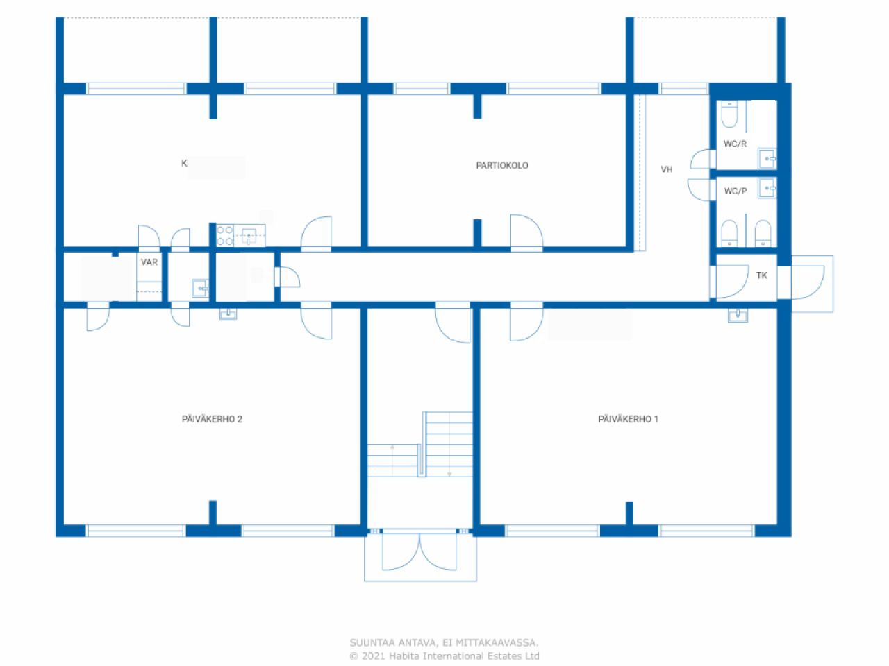 Yleisettilat: ulkoiluvälinevarasto, sauna, väestönsuoja, kylmäkellari.