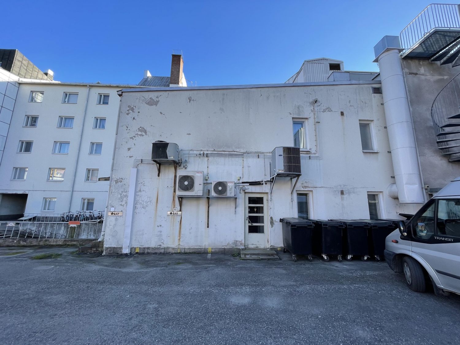 Vuokrattavana Oulun Keskustasta edullinen työhuone, Isokatu 28 sisäpihalta.