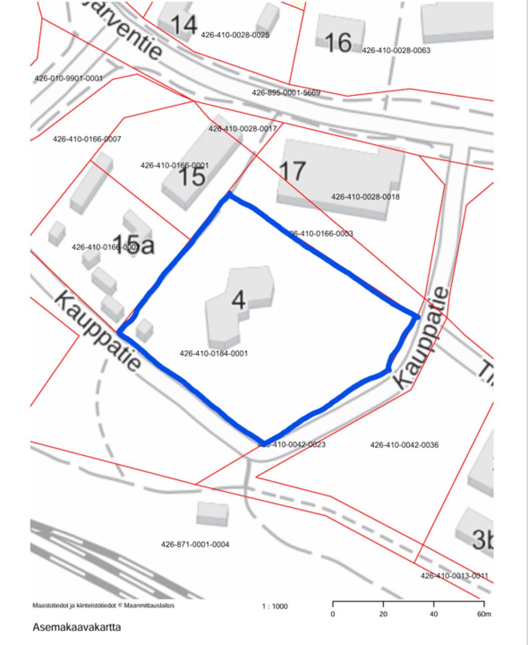 Kohteelle muodostetaan noin 6.000 m2 suuruinen määräala, josta kunnan kanssa tehdään vuokrasopimus. Esimerkkihintoja vuokrille: rivitalo- ja kerrostaloasuminen 3310 €/vuosi, liiketoiminta ja palveluasuminen 4133 €/vuosi.