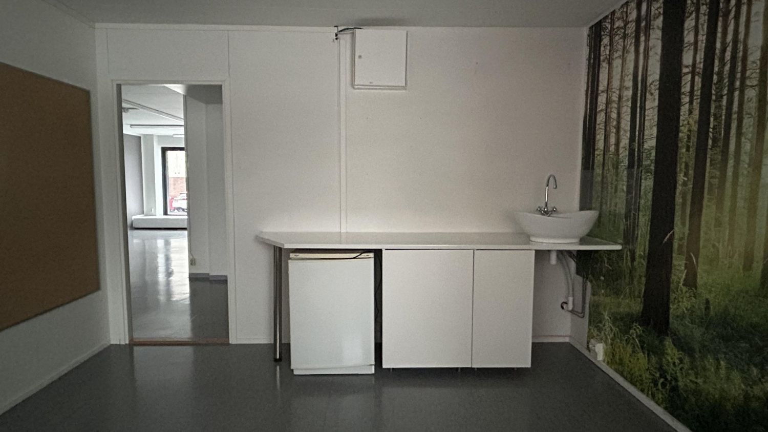 Tilan 85m2 jakautuvat isoon etutilaan ja kahteen erilliseen toimistoon.