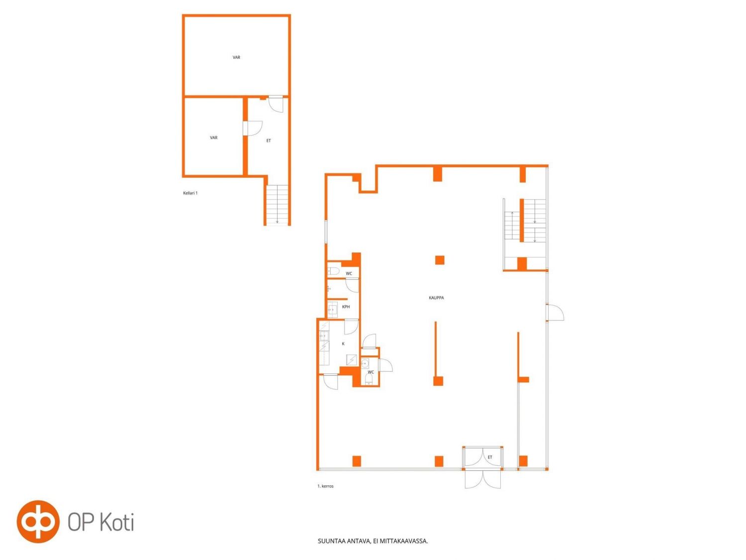 237,5 m² liiketila katutasossa ja siihen kuuluu myös 67,5 m² kellari.