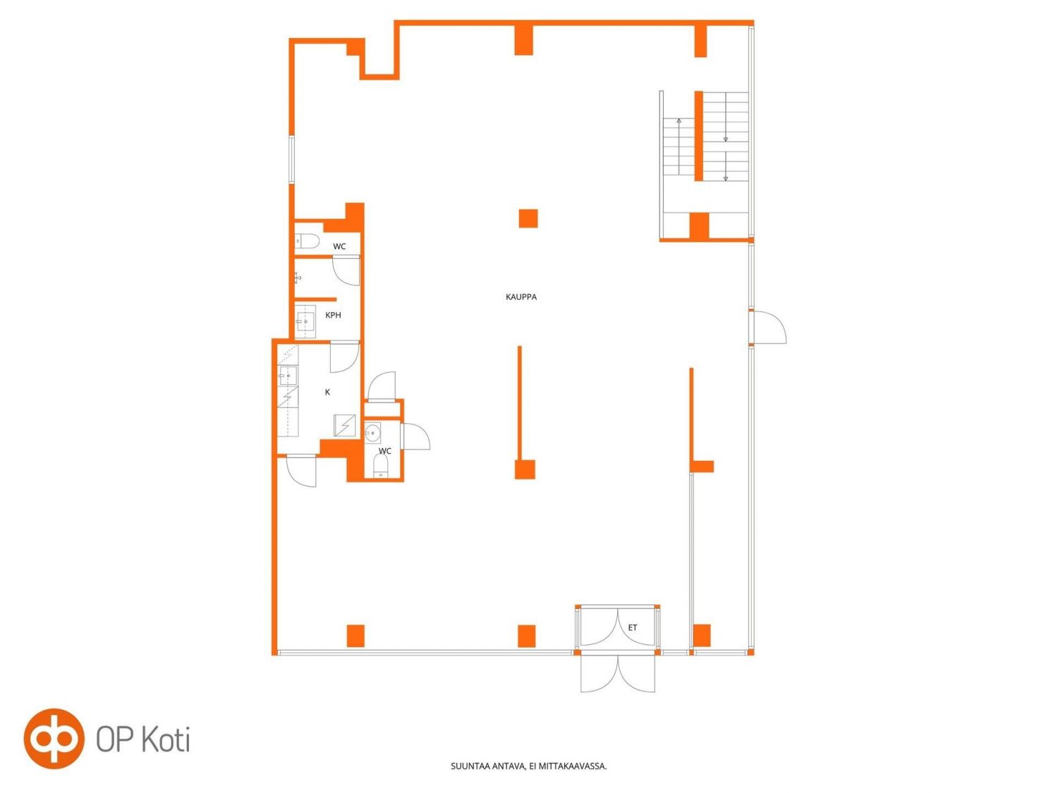 Katutasossa 237,5 m² avaraa liiketilaa, erinomainen näkyvyys ja asiakasvirta.
