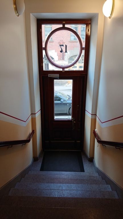 Tämä noin 49 m² toimistotila sijaitsee kiinteistön 1. kerroksessa. Toimistoon on kulku porrashuoneen kautta, tila on käytännössä hieman katutason yläpuolella. Tilassa on kaksi huonetta, oma wc-tila ja keittiöpiste.