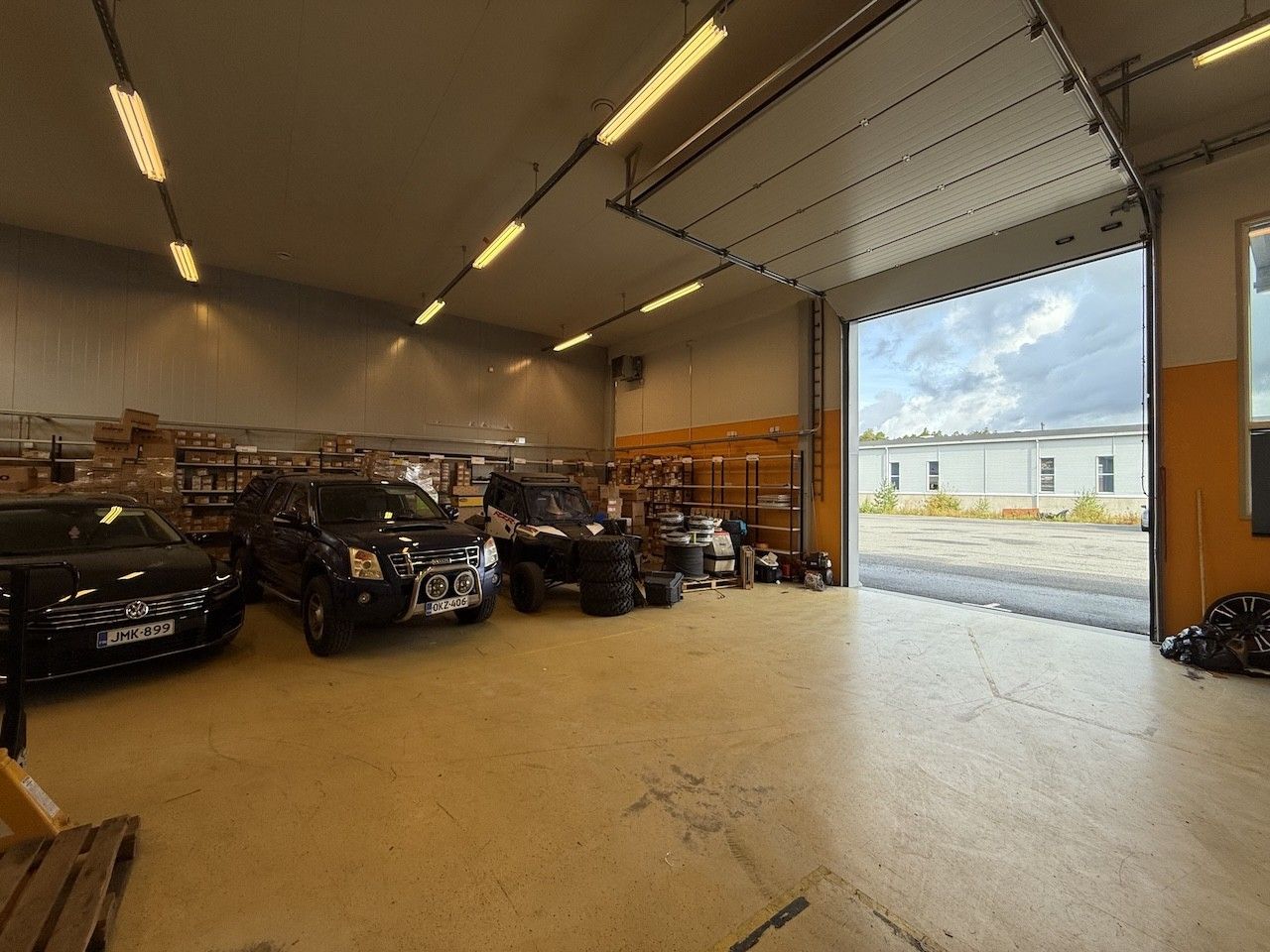 Tilakokonaisuus, jossa 425m2 hallitilan lisäksi 190m2 toimistotilat kahdessa kerroksessa. 1.kerroksessa iso taukotila, jossa avokeittiö. Lisäksi samassa kerroksessa on väestönsuoja ja kahdet vessat, joista toinen inva-mitoitettu.