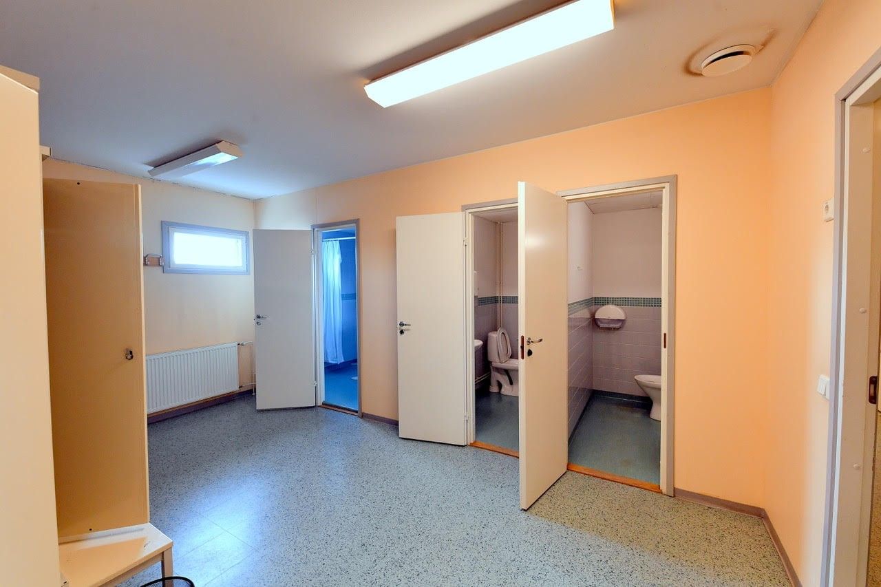 2.kerroksessa löytyy kahdet isot sososiaalitilat, suihkut ja wc-tilat. Pukuhuoneet soveltuvat myös toimistotiloiksi. Nykyinen vuokralainen on käyttänyt tilavia pukuhuoneita toimistona.