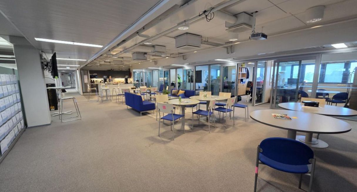 Etsitkö edullista ja helposti saavutettavaa toimistotilaa? Tämä viidennen kerroksen kokonaisuus tarjoaa pääsääntöisesti avotilaa, lisäksi kahdeksan työhuonetta, keskittymistiloja ja neuvotteluhuoneita. Tila on valoisa ja varustettu jäähdytyksellä konvektoreilla, joissa on omat säätimet. Käytössäsi on kaksi tyylikästä avokeittiötä integroiduilla koneilla, hiljattain remontoidut WC-tilat, joita on runsaasti sekä suihku. Kaksi modernia keittiötä tuovat sujuvuutta arkeen. Lattiat ovat harmaasävyistä tekstiilipalamattoa. Tilassa olevassa ristikytkentä-/serveritilassa on erillisjäähdytys.