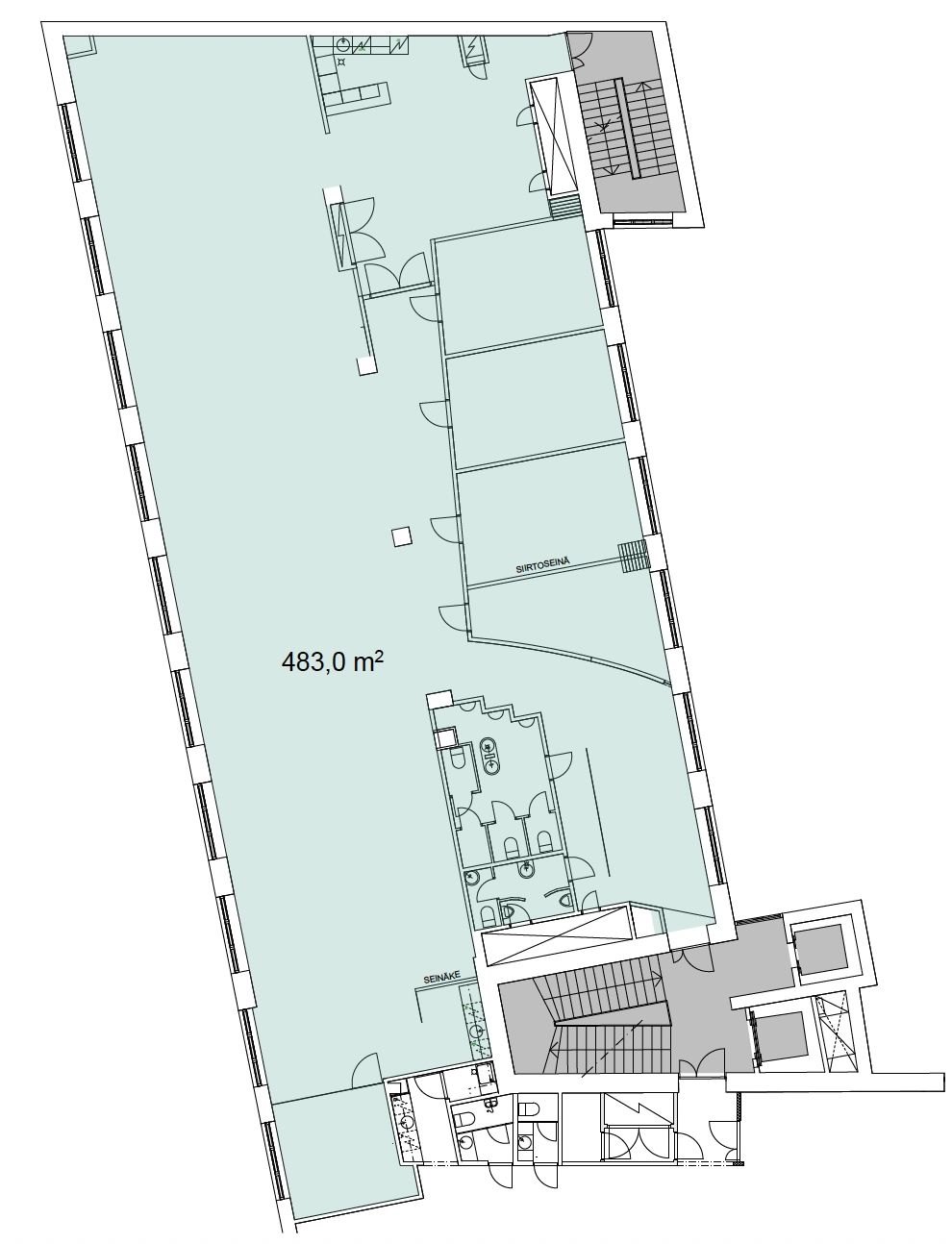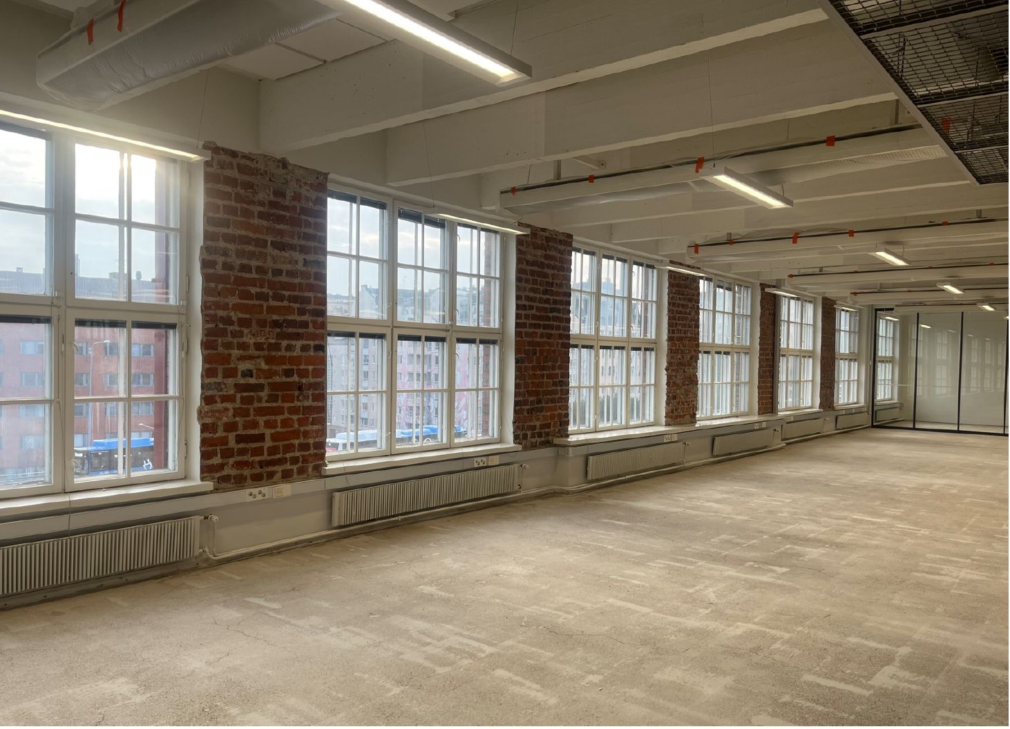 Muuttovalmis 3. kerroksen 483 m² toimistotila, jossa on useita huoneita sekä avotilaa talon houkuttelevalla alkuperäisellä puolella.
