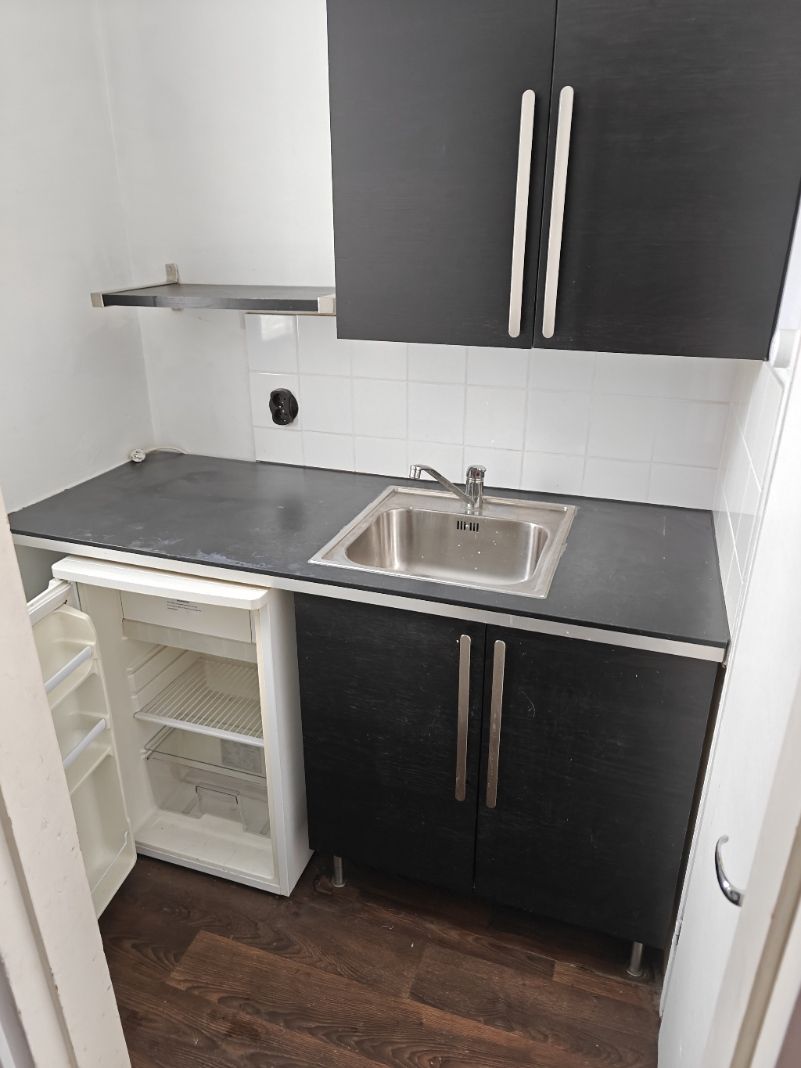 Liiketilassa isot ikkunat, takahuoneessa keittiövarustus ja wc, myös takaovi.