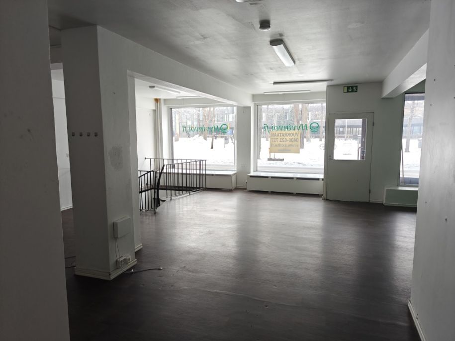 Liiketila keskeisellä paikalla, liiketilaa 91 m2 ja kellaritilaa 34 m2, aivan bussipysäkin tuntumassa.