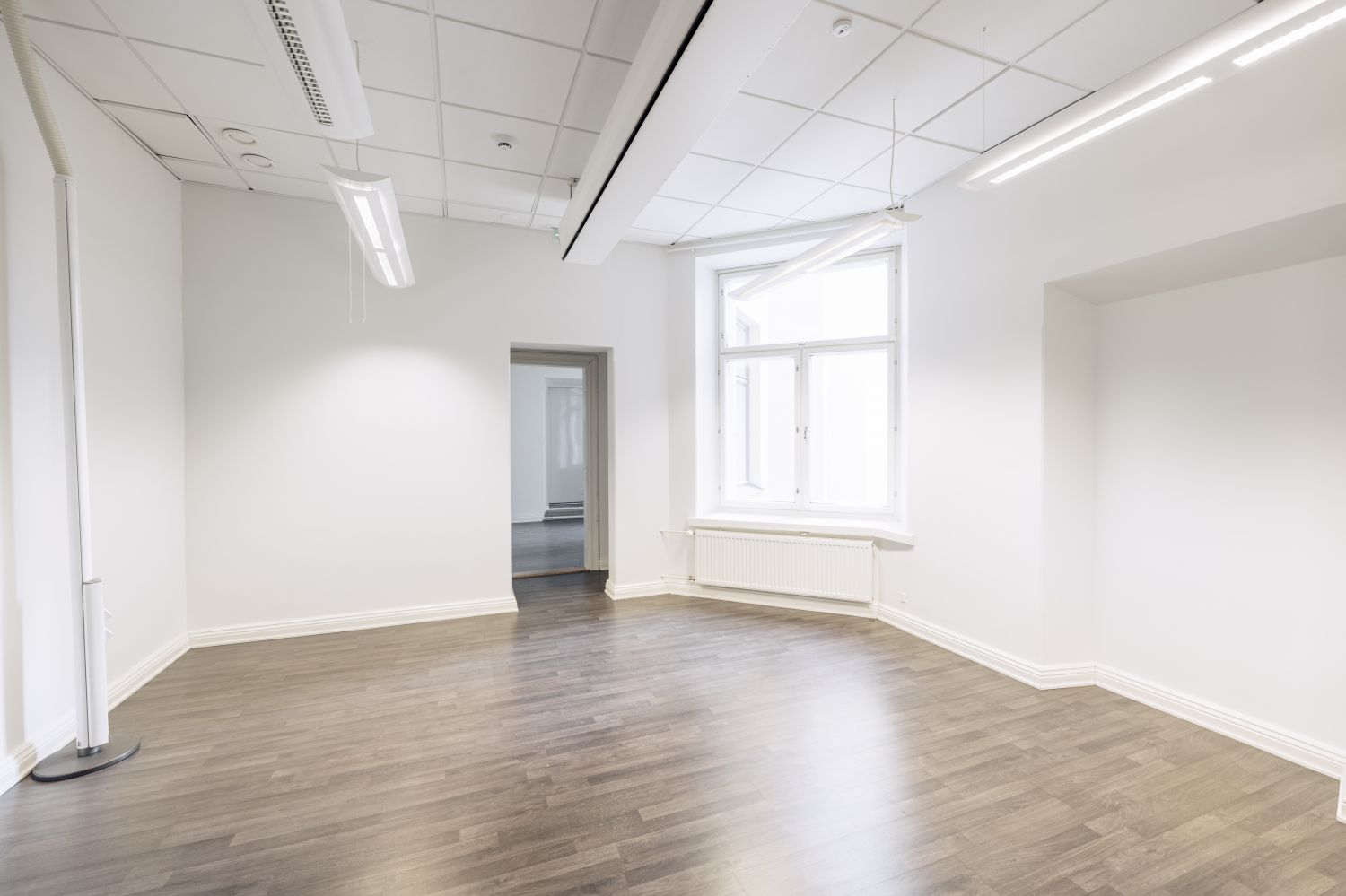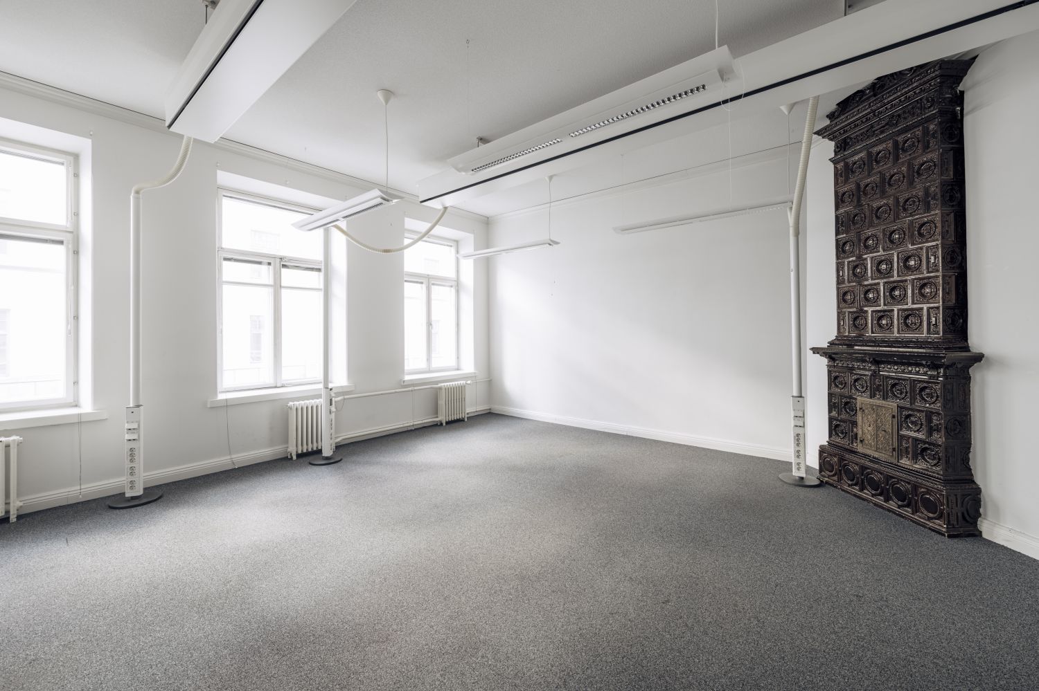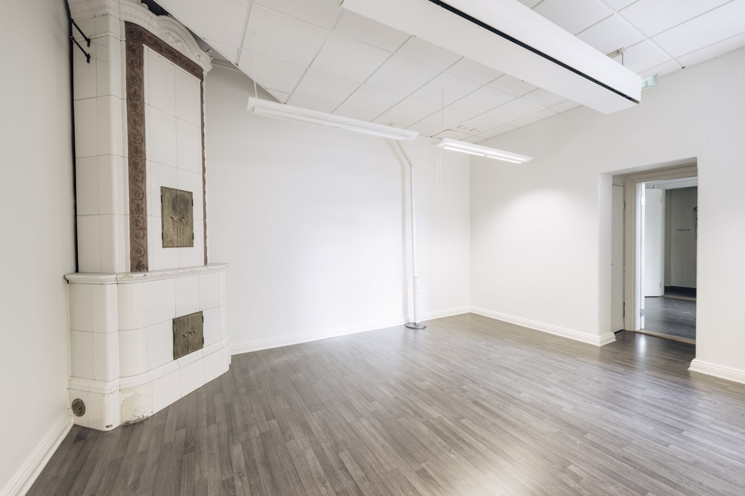 3. kerroksen toimisto, jossa on sekä huoneita että avotilaa. Näkymät sekä Vilhonkadulle että sisäpihalle. Tilassa on hyvä huonekorkeus ja sen erikoisuutena on useampi upea vanha kakluuni.