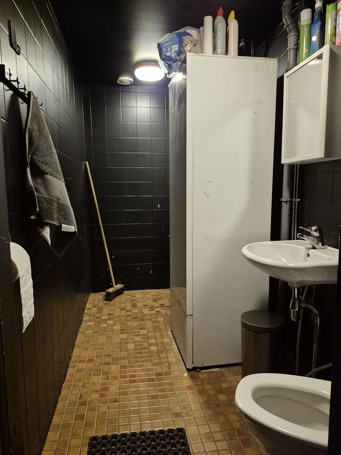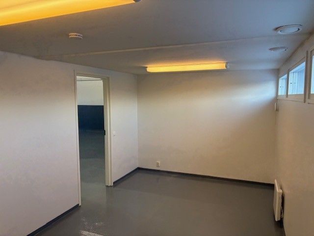 Hallissa lattiakaivo, voimavirta, vesipiste, erillinen toimistohuone/keittiö.