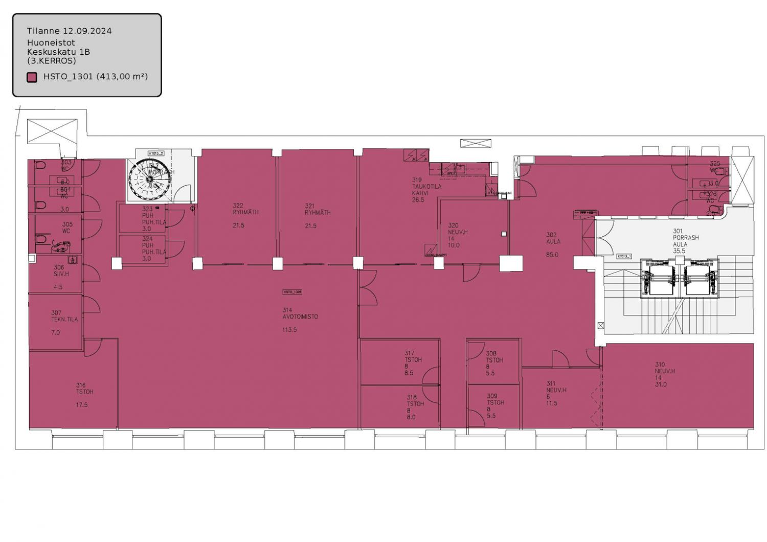 Vuokrattavana hieno 412 m² toimistotila erinomaisella sijainnilla Helsingin keskustassa, 3. kerroksessa. Tila koostuu avotilasta ja erillisistä toimistohuoneista, mikä mahdollistaa monipuolisen ja joustavan työskentely-ympäristön. Huippusijainti takaa helpon pääsyn kaikkiin keskustan palveluihin.