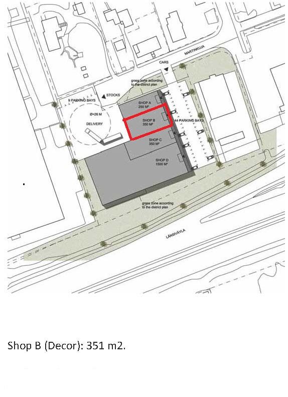 Vuokrattavana katutason 351 m2 liiketila. Kuvassa tila B. Tilassa aiemmin ollut Värisilmä ja se soveltuukin erinomaisesti vastaavaan käyttöön tai kalustemyymäläksi tmv. Kiinteistö sijaitsee vilkkaalla ja helposti saavutettavalla alueella, mikä tarjoaa erinomaiset mahdollisuudet kaupankäynnille.