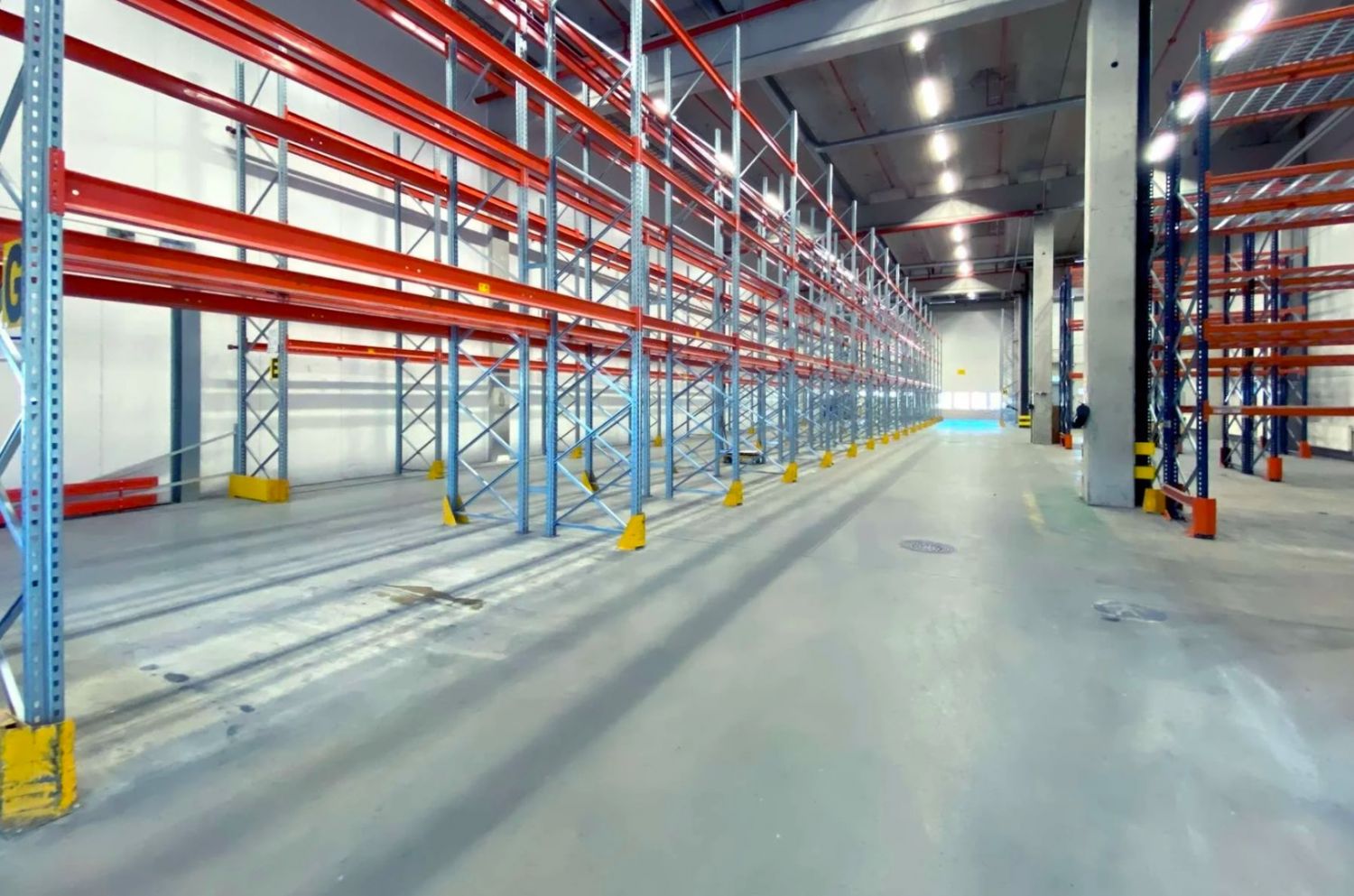 Varastohalleissa on valmiina lavahyllyt. Lavapaikkoja on yhteensä 1200 kpl. Hyllyissä on sprinklerit. Kolme tuotantohallia sekä pesula
