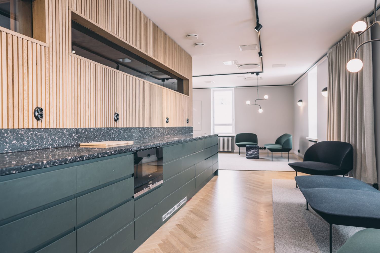 Vuokrattavana 4. kerroksen saneerattu toimistotila. Sisäkuvat showroom-tilasta.