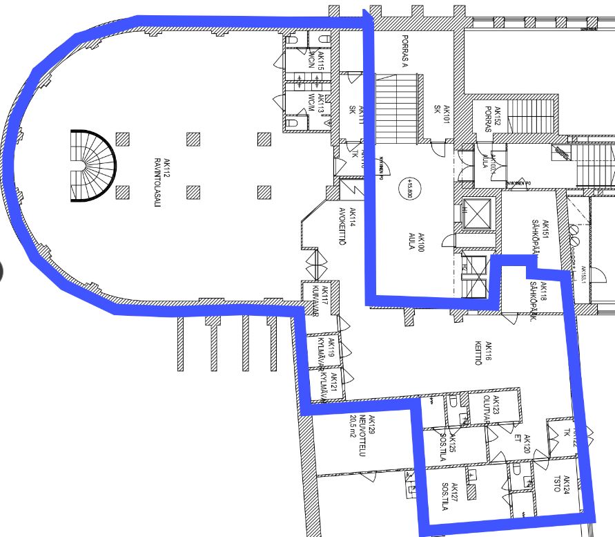 1. kerros 175 m² – valoisa ja näyttävä ravintolatila katutasossa, joka tarjoaa erinomaisen näkyvyyden.
