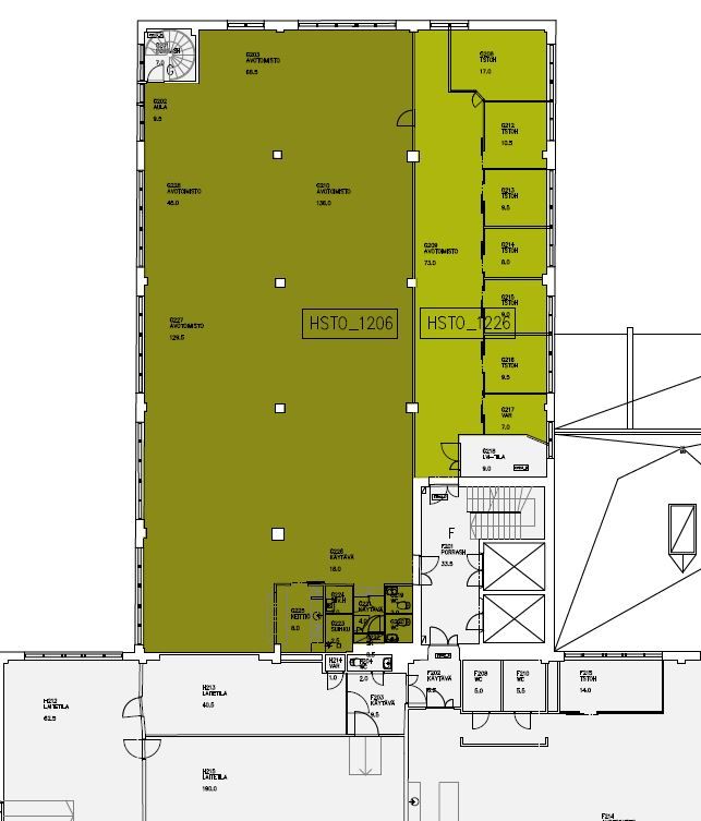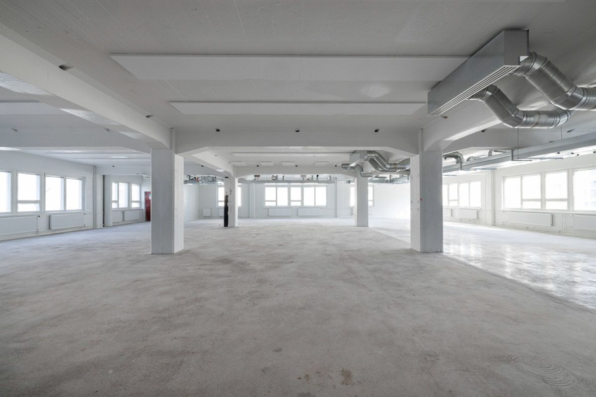 Valoisa tila on tällä hetkellä raakapinnoilla ja viimeistellään vuokralaisen toiveiden mukaisesti. Tilaan rakennetaan uudet wc-tilat ja keittiö.