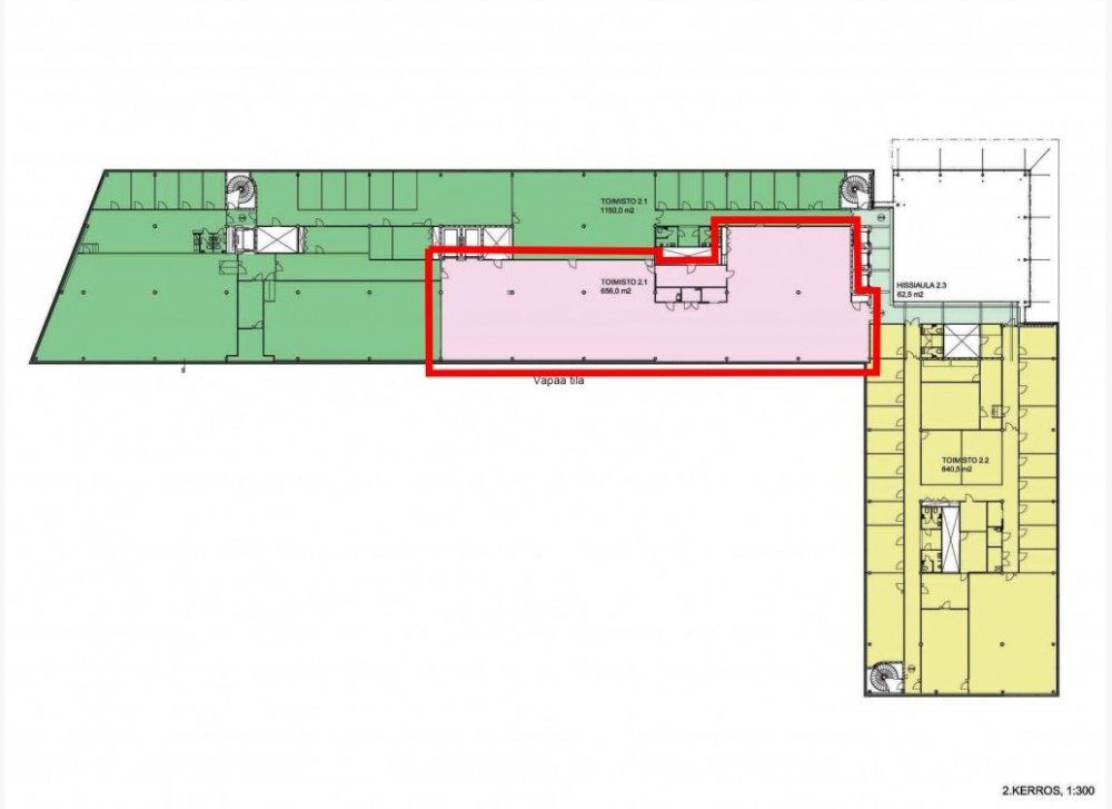 Vuokrattavana 2. kerroksen 763 m2 toimistotila. Tila soveltuu toimistotilaksi tai kevyeeseen eletroniikkatuotantoon. Tilassa on ESD-lattia. Tilaan lastausmahdollisuus suoraan lastaustilasta, johon kaksi lastaustaskua. Tilassa useita jäähdyttimiä katossa.