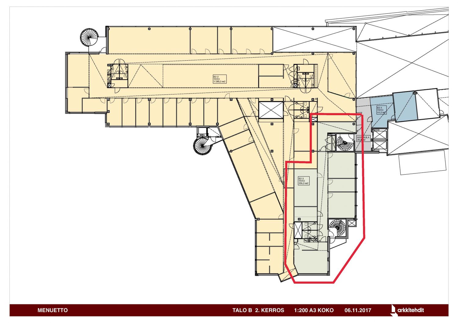 Vuokrattana 2. kerroksen 205 m2 toimistotila Huudi-kiinteistön B-talossa. Sisävalokuvat ovat esimerkkejä kiinteistön tiloista.