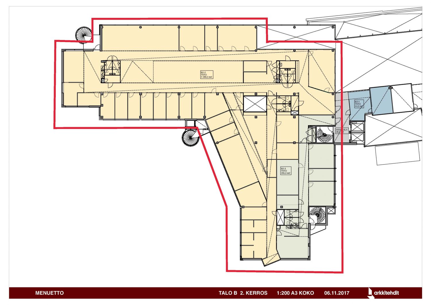 Vuokrattavana 2. kerroksen 1296 m2 toimistotila Huudi-kiinteistön B-rapussa. Sisävalokuvat ovat esimerkkejä kiinteistön tiloista.