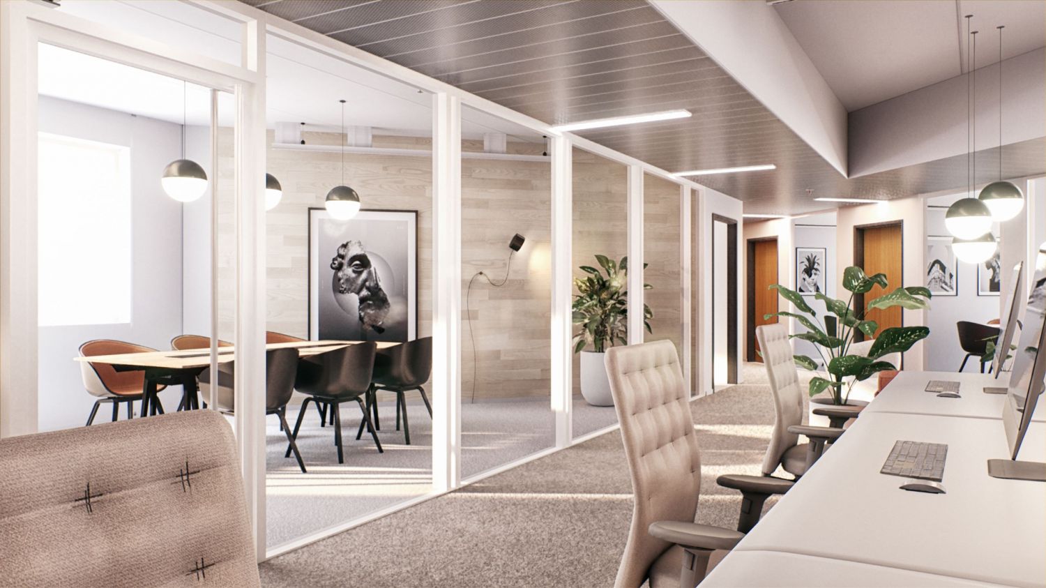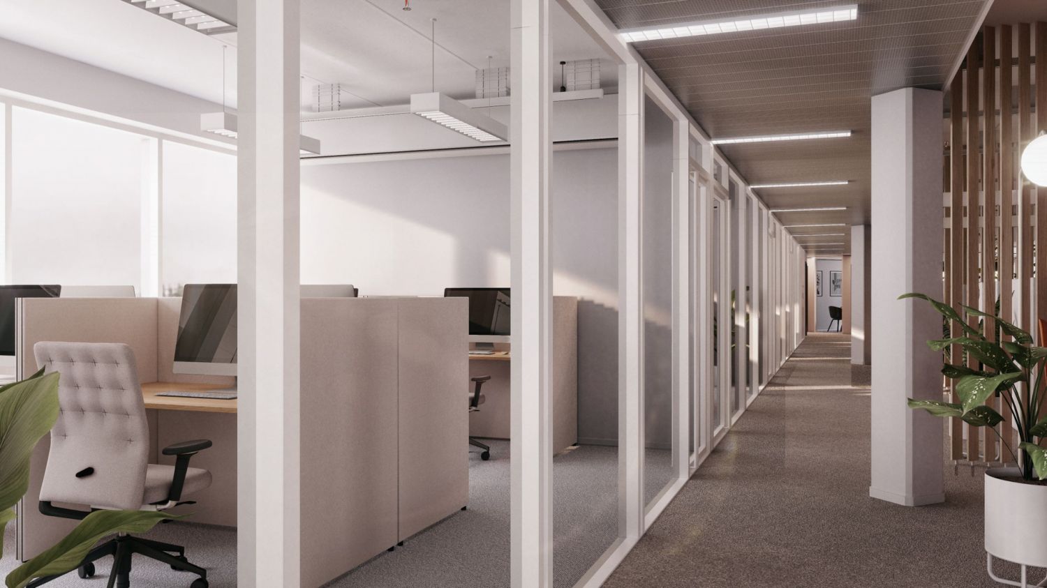 Havainnekuvat ovat taiteilijan ehdotuksia tilojen sisustuksesta. Suunnittelemme tilojen lopullisen toteutuksen aina asiakkaan tarpeiden ja toiveiden mukaan. Tässä kohteessa sinulla on erityisen hyvät mahdollisuudet vaikuttaa tilaratkaisuihin toivotpa sitten avointa tilaa tai rauhallisia työskentelysoppia.