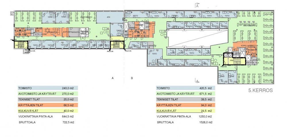 Vuokrattavissa viidennen kerroksen heti vapaa toimistotila B-rakennuksessa.