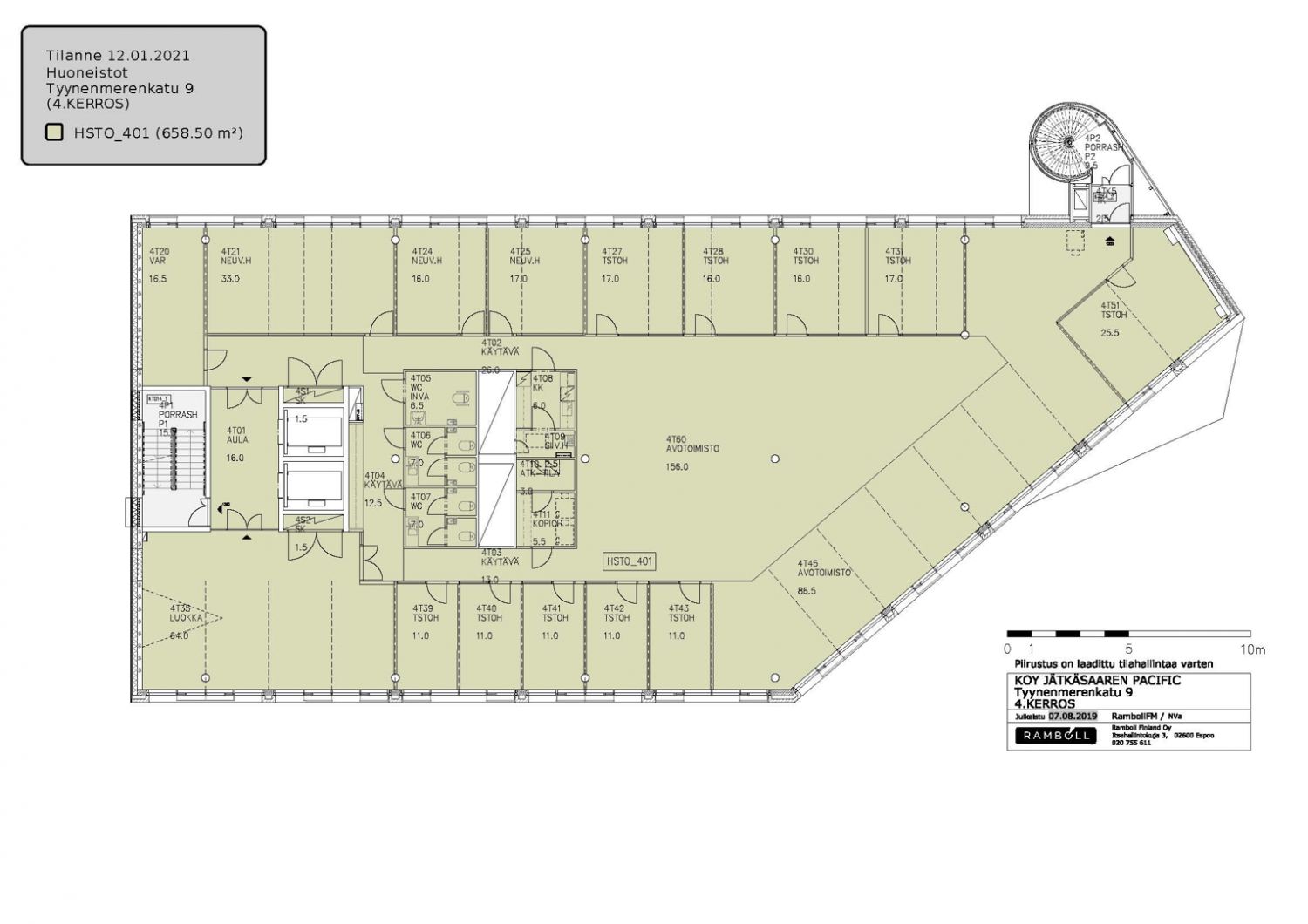 Vuokrattavana siisti neljännen kerroksen toimistotila, jossa on useita työhuoneita sekä avotilaa. Tilaa on mahdollista muokata käyttäjän tarpeiden mukaan. Kiinteistö sijaitsee erinomaisella paikalla Helsingin Jätkäsaaren kehittyvällä alueella, jonne kävelee Ruoholahden metroasemalta noin 10 minuutissa, ja kevyen liikenteen Baanaa pitkin ydinkeskustakin on vain parin kilometrin päässä.