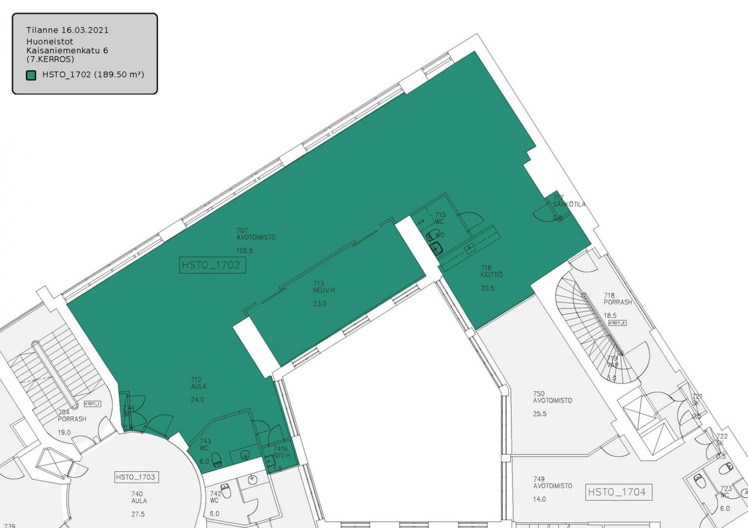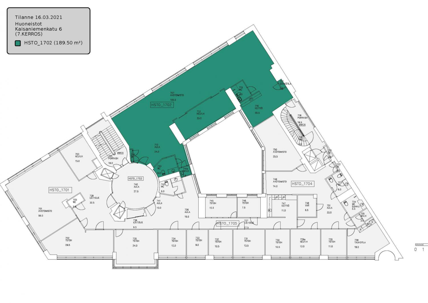 Vuokrattavana seitsemännen kerroksen moderni 203 m2 avotoimistotila Vuorikadun puolella. Huoneistossa on avotilan lisäksi erillinen neuvottelutila sekä omat keittiö- ja wc-tilat. Kiinteistö sijaitsee keskeisellä paikalla Helsingin ydinkeskustan tuntumassa.