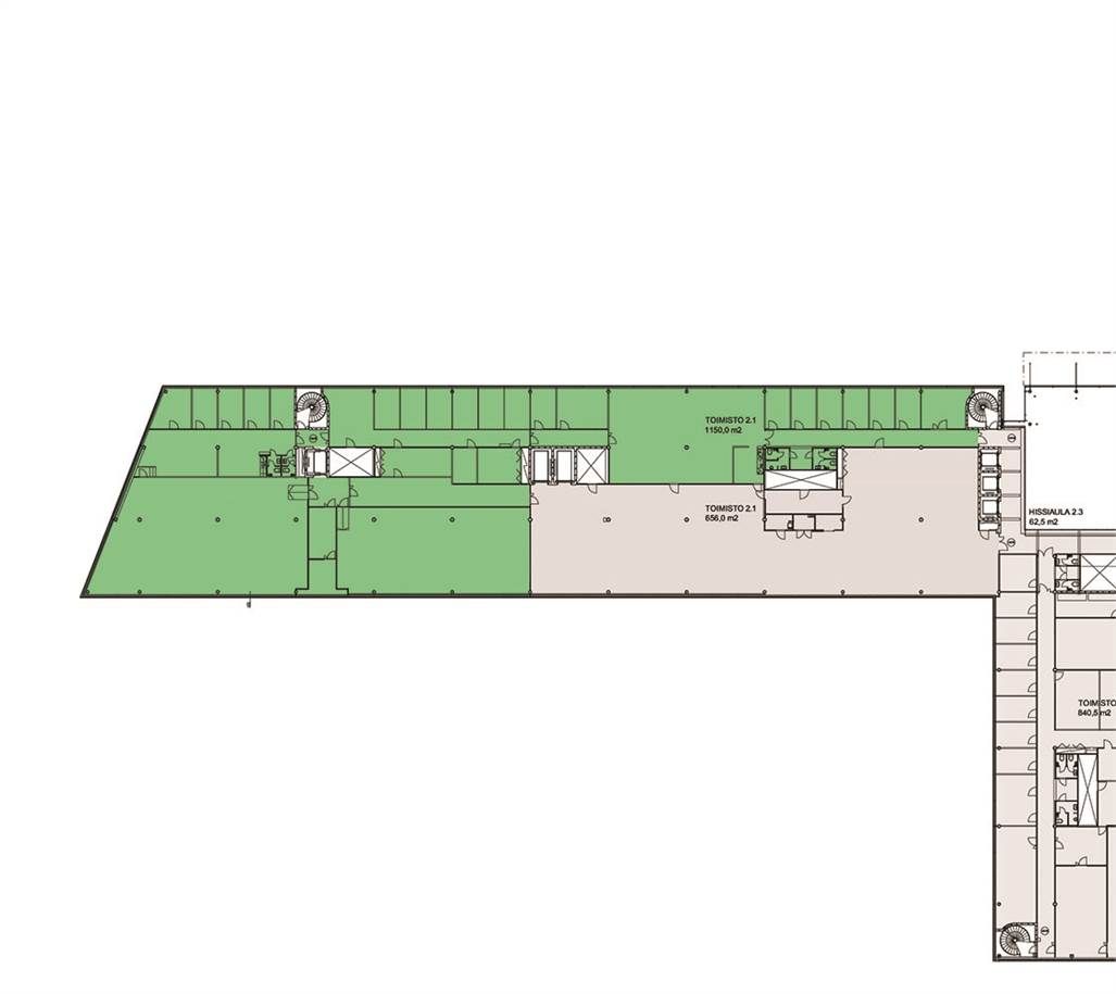 Vuokrattavana 2. kerroksen 1340 m2 toimistotila.
