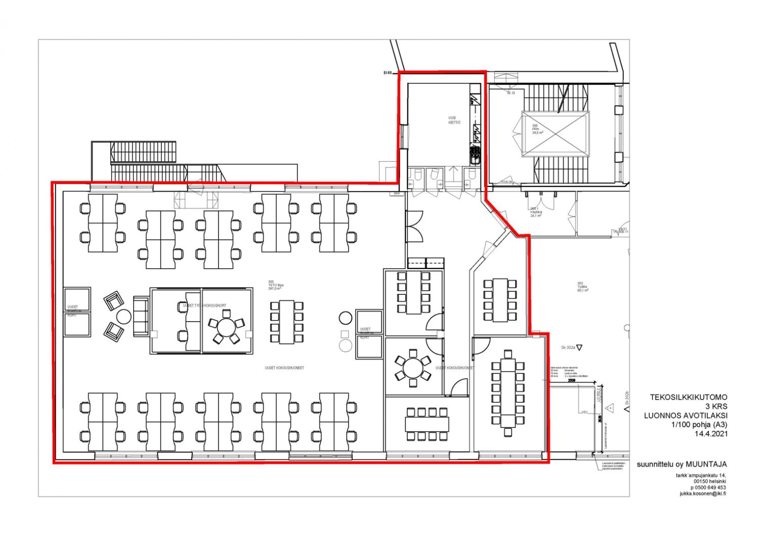 Tarjolla upea 415 m² toimistotila osoitteessa Kuortaneenkatu 5, Tekosilkkikutomon kolmannessa kerroksessa. Tila remontoidaan moderniksi teollisuushenkiseksi toimistoksi, jossa on suuret ikkunat tuomassa valoa ja avaruutta.