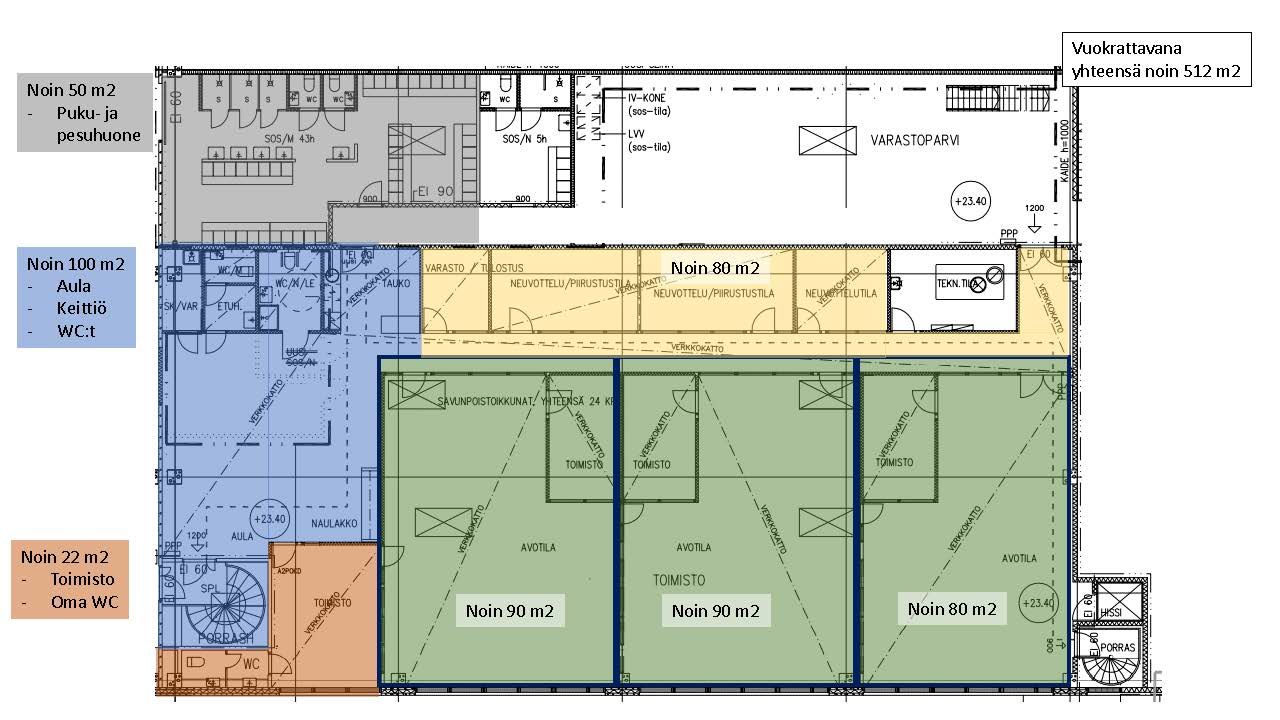 Huippusiistiä nykyaikaista toimistotilaa Kauklahdessa logistiikka/varastorakennuksen toisessa kerroksessa. Tilat tehty noin kaksi vuotta sitten. Toimistotila voidaan jakaa esimerkisi kolmelle ryhmälle, jolloin sosiaaltilat ja keittiö olisivat yhteiskäytössä.
