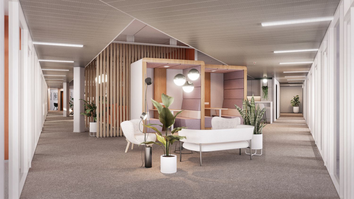 Muuntojoustava ja siisti toisen kerroksen valoisa toimistotila. Havainnekuvat ovat taiteilijan ehdotuksia tilojen sisustuksesta. Suunnittelemme tilojen lopullisen toteutuksen aina asiakkaan tarpeiden ja toiveiden mukaan. Tässä kohteessa sinulla on erityisen hyvät mahdollisuudet vaikuttaa tilaratkaisuihin toivotpa sitten avointa tilaa tai rauhallisia työskentelysoppia.