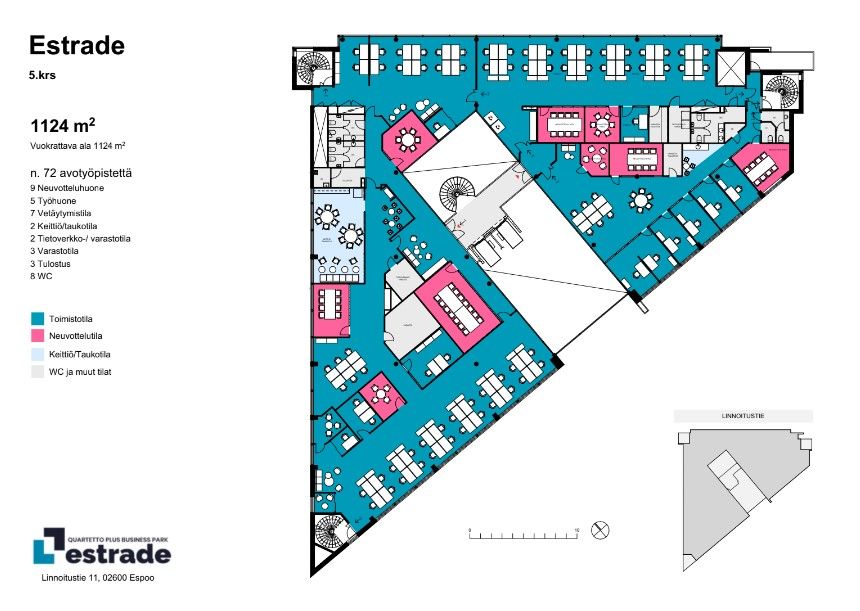 Toimistotila Quartetto Business Park Plus ESTRADE-talossa. Kyseessä koko 5. kerros.