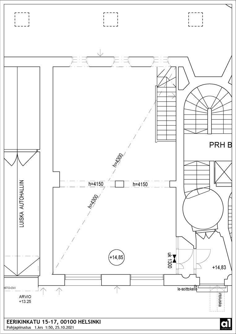 Myymälätila erinomaisella sijainnilla Eerikinkadun ja Fredrikinkadun kulmakiinteistössä. Vuokrattavaa tilaa on yhteensä 195 m2, josta katutasossa on 105 m2 ja kellarikerroksessa 90 m2. Liiketilan 4 metrin huonekorkeus ja suuret ikkunat tekevät tilasta valoisan ja ilmavan. Mahdollisuus avata myös sisäpihalle avautuvat ikkunat, jotka 2. kerroksen korkeudessa.