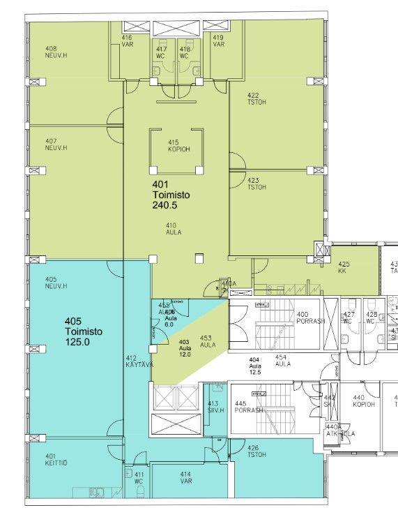 Vuokrattavana 4. kerroksen siisti, lasiseinillä erotettu avotoimisto 190,5 m². Lisäksi aulasta on jyvitetty 12 m² osuus. Mahdollista yhdistää viereiseen 228m2 kokoiseen tilaan, mikä tarjoaa joustavuutta tilatarpeisiin. Erinomainen sijainti keskustan palveluiden äärellä.