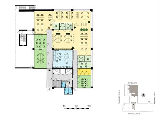 Valoisa, suurilla ikkunoilla kolmeen ilmansuuntaan varustettu monipuolinen toimistotila, joka sopii hybridityöskentelyyn. Tilassa on kaksi isoa neuvotteluhuonetta, viisi vetäytymistilaa, kaksi toimistohuonetta ja cafe/lounge tila kohtaamisille. Nopeasti käyttöönotettavissa ja tarvittaessa yhdistettävissä viereiseen 361,5 m2 tilaan.