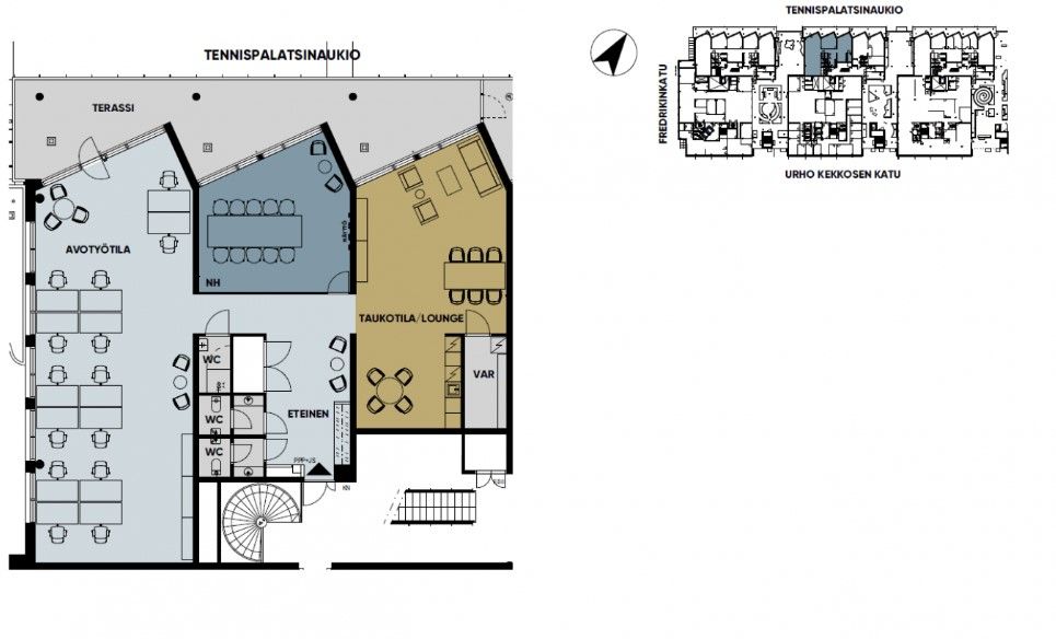 Laadukas 228 m2 toimisto paraatipaikalla aivan Kampin sydämessä. Tilaan saa hyvin sovitettua niin avotyötilaa, neuvotteluhuoneen kuin hyvänkokoisen lounge-alueen tulevan vuokralaisen toiveiden mukaisesti. Toimistotilan yhteydessä myös 50 m2 terassi, josta avautuu näkymät Tennispalatsinaukiolle. Tila sijaitsee Urhontornin 3. kerroksessa.