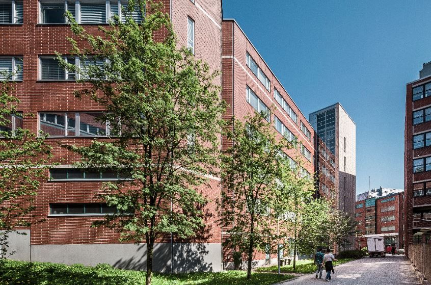 Industrial-tunnelmaa Vallilassa. Vuonna 1999 valmistunut toimistotalo Elimäenkadulla Vallilassa loistavien liikenneyhteyksien varrella. Vanha teollisuuskiinteistö, joka on muutettu toimistotiloiksi.