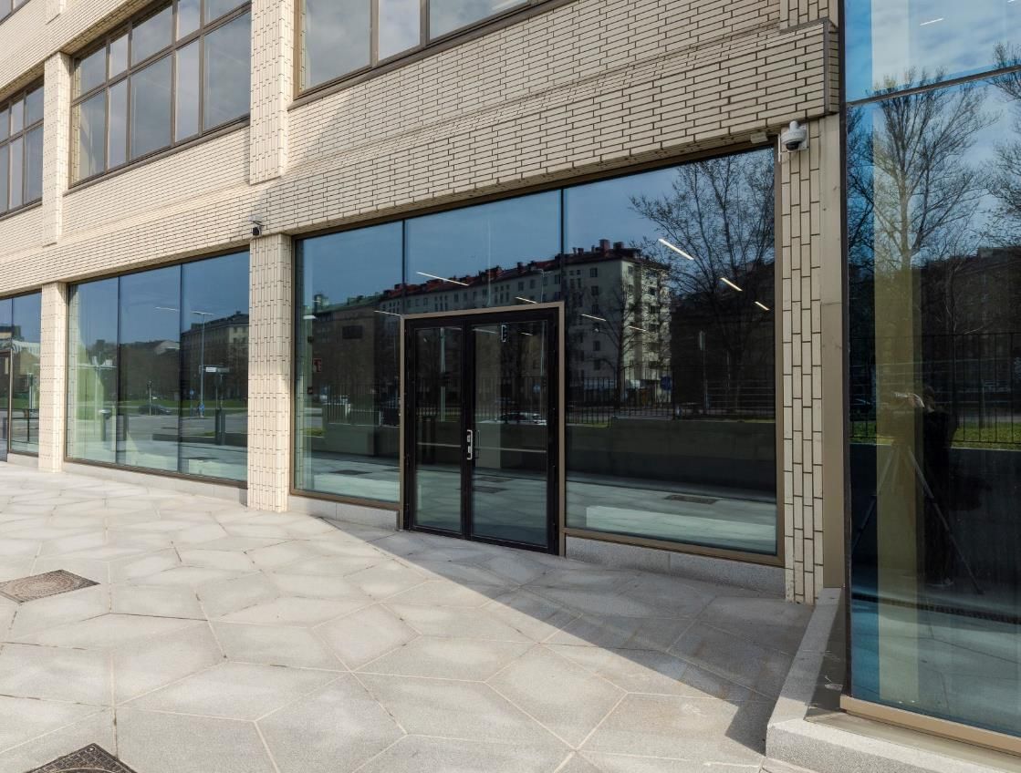 1. kerroksen liiketila, jossa on sosiaalitilat ja varastotilaa. Sisäänkäynti liiketilaan on Teollisuuskadulta.