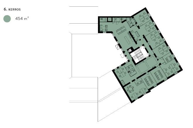 Vuokrattavana 6. kerroksen toimistotila juuri saneeratusta kiinteistöstä.