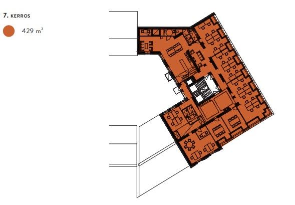 Vuokrattavana 7.- ja 8. kerroksen toimistotilaa saneerauksessa olevasta kiinteistöstä. Kerrosten välillä on sisäporrasyhteys. 7. krs on 431 m2, 8. krs noin 289 m2. Huonekorkeus parhaillaan 6m. Kerrokset 7-8 valmistuvat loppuvuoteen 2025 / alkuvuosi 2026 mennessä. Vuokralainen pääsee vaikuttamaan tilan lopulliseen layouttiin.