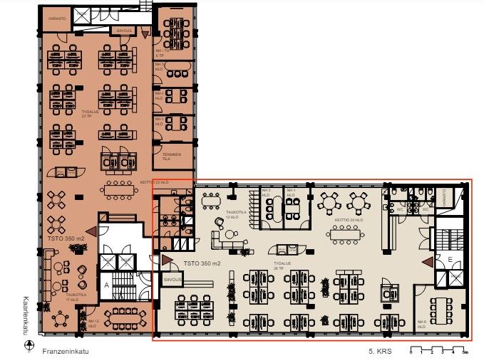 Tarjolla vuokrattavaksi viihtyisä ja valoisa toimistotila Kallion sydämessä, osoitteessa Kaarlenkatu 9-11. Tämä 5. kerroksen tila kattaa 350 m2.