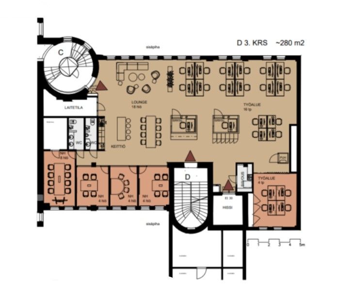 Tarjolla vuokrattavaksi viihtyisä ja valoisa toimistotila Kallion sydämessä, osoitteessa Kaarlenkatu 9-11. Tämä 3. kerroksen tila kattaa 280 m2.